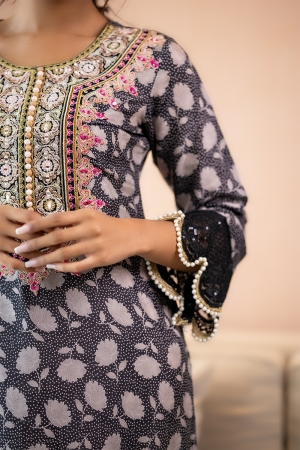 - Material: Rayon Cotton Print With Embroidered Sequence Work.