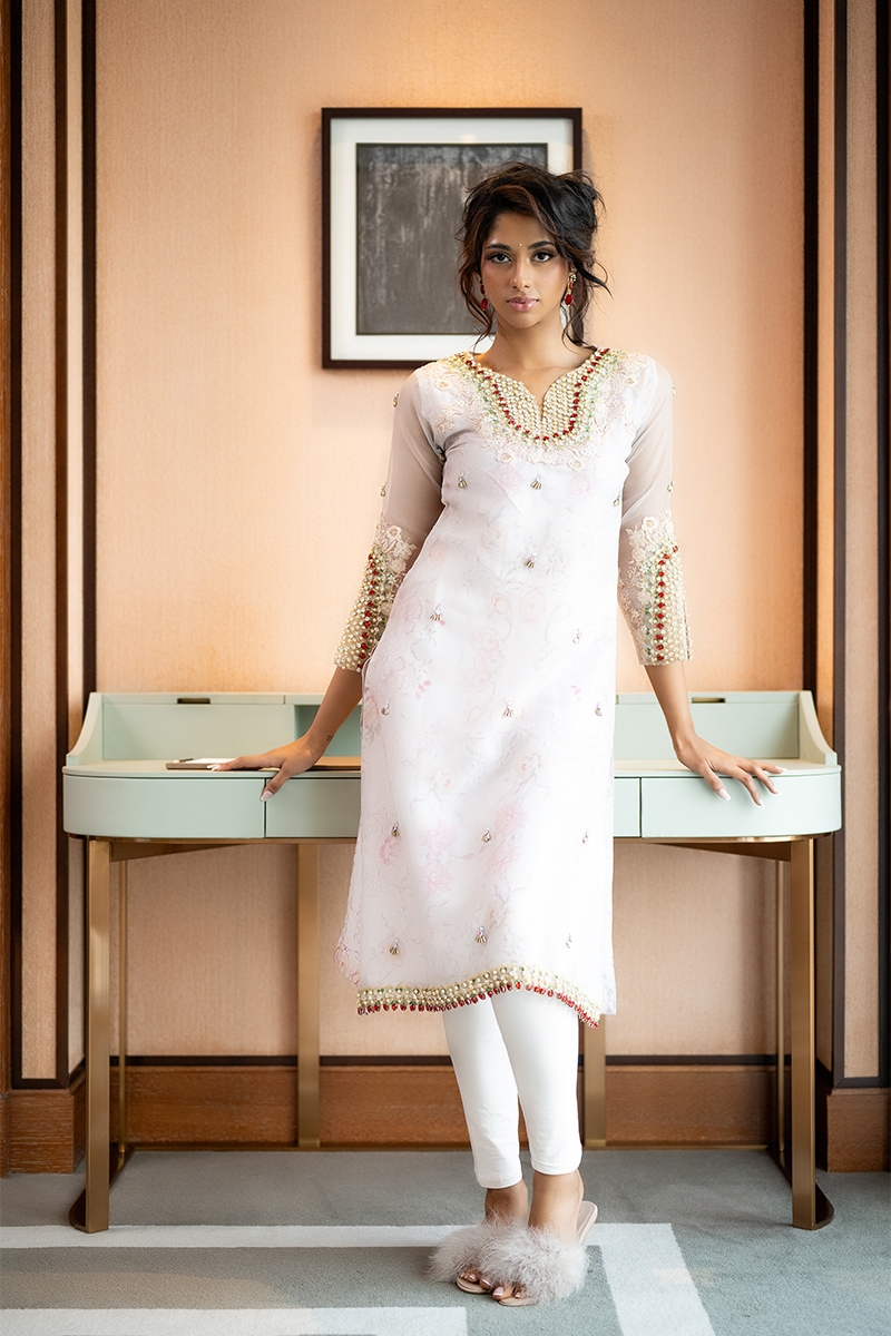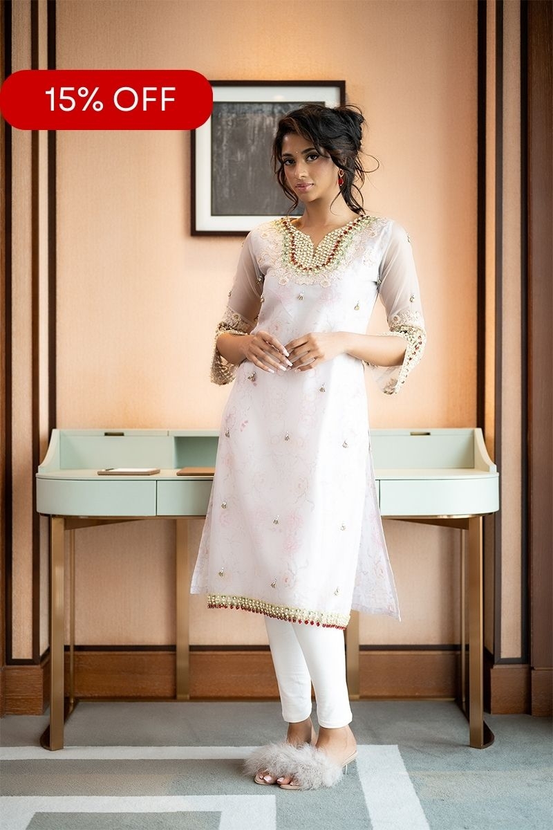 - Material: Rayon Cotton Print With Embroidered Sequence Work.